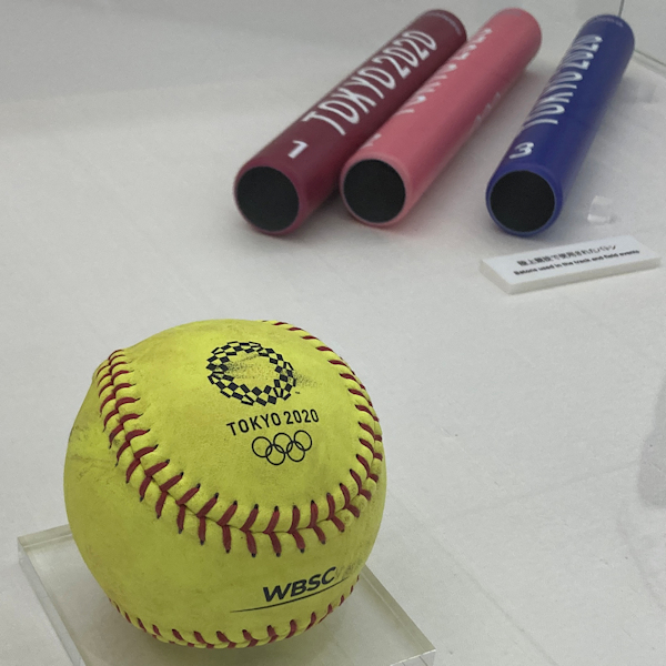 ソフトボールの決勝戦で使われたボール、陸上競技で使われたバトンなどがありました。